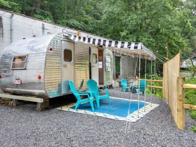 Beautifully restored and updated with modern amenities. Quality Memory foam mattress, turquoise appliances, solid oak floors, new bathroom & kitchen fixtures, with original light fixtures and cabinets. Also and of course a beautifully polished aluminum skin to stand out wherever you go. This camper will be the talk of the campground or the filing station.