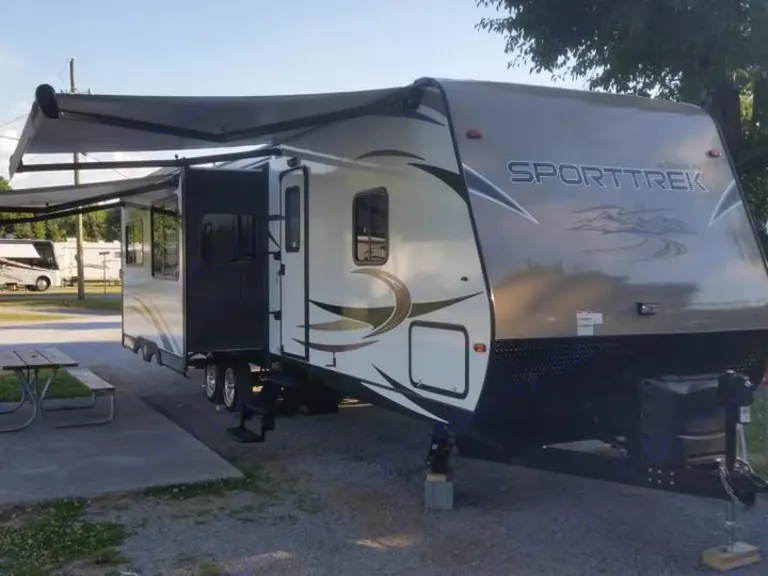 **RV IS Located IN Kingsport, TN, Delivery TO Asheville AND THE Surrounding Areas Available FOR AN Additional FEE. Please Contact FOR Rates**2016 travel trailer with 3 slide outs. Bunk room that's great for large or small families. Living room has a jiffy sofa, 40" TV, DVD/CD/Radio and fireplace. Outside entertainment area complete with mini fridge, 40" TV, DVD/CD/radio, sink, and gas stove. RV has a dining room table (that folds into a bed), and an additional table in bunk room for playing games. Bathroom has a spacious rounded shower, with a good amount of cabinet space. Kitchen has a island with a double sink and plenty of cabinets throughout. Spacious RV for short or long vacations. Plenty of room to walk about the cabin. Included in the rental; toaster, knife set, pots and pans, coffee pot, and more. 50 amp electricity hook-up (30 amp converter provided if needed), cable cord included.Other things to noteAbsolutely NO smoking! Pets are welcome. Delivery is optional for an additional fee. Please contact for rates!