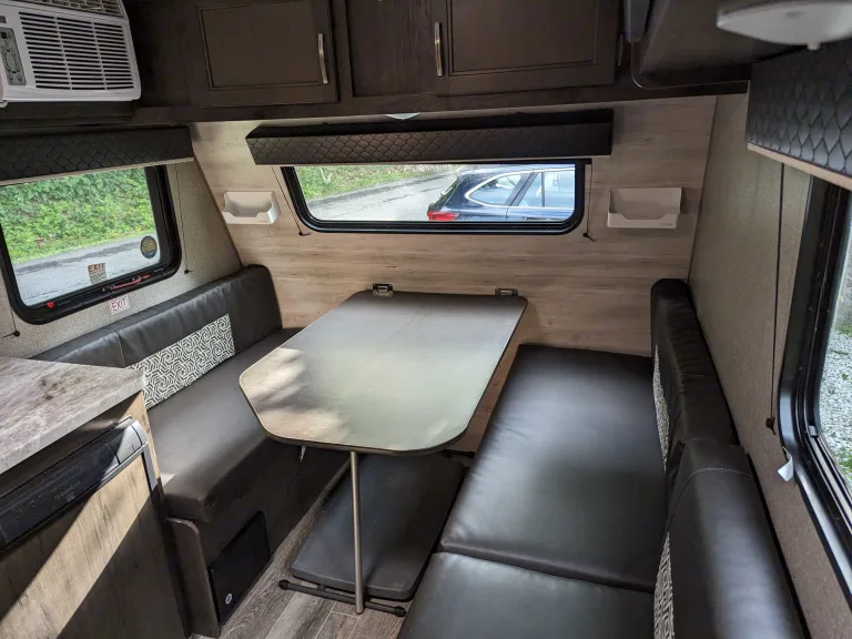 - Separate bench so you still have somewhere to sit even if you leave the dinette in the bed setting. This bench is also about the size of a cot, so it could sleep a small person.