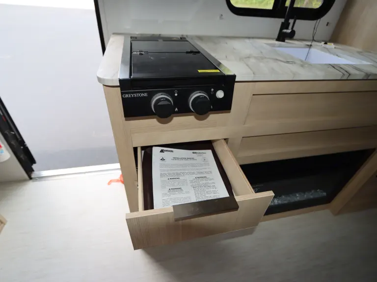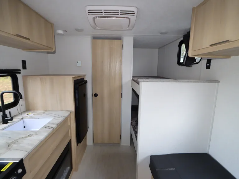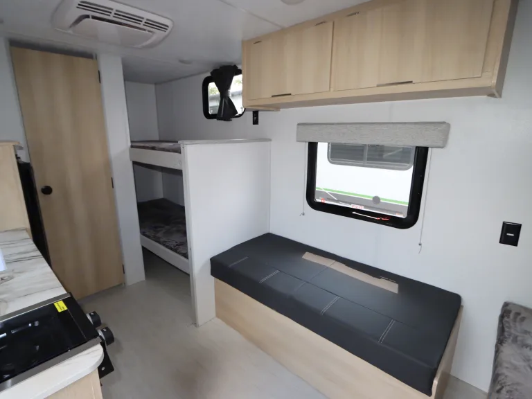 Fully featured, light weight, and easy to tow, this spacipus little travel trailer offers convenience in a tiny package. Perfect for first time and seasoned campers alike, a modern residential living space is easy to call your ay from home. Comfortable for those rainy days that run you indoors with lots of space for the whole family. Queen size bed, 2 bunks and a couch that converts to a bunk. Folding table so you can stow it out of the way when you aren't using it. Spacious counter top with two burner cooktop and plenty of space for meal prep. Roomy bathroom with a shower. Electric fireplace for heating up those chilly evenings or mornings. Wall mounted TV if you want to watch a show before bed or as a fill in activity during bad weather. Outdoor electric awning. No cranking! Electric jack for easy hitching and unhitching. 12 volt residential style refrigerator so it cools down fast.