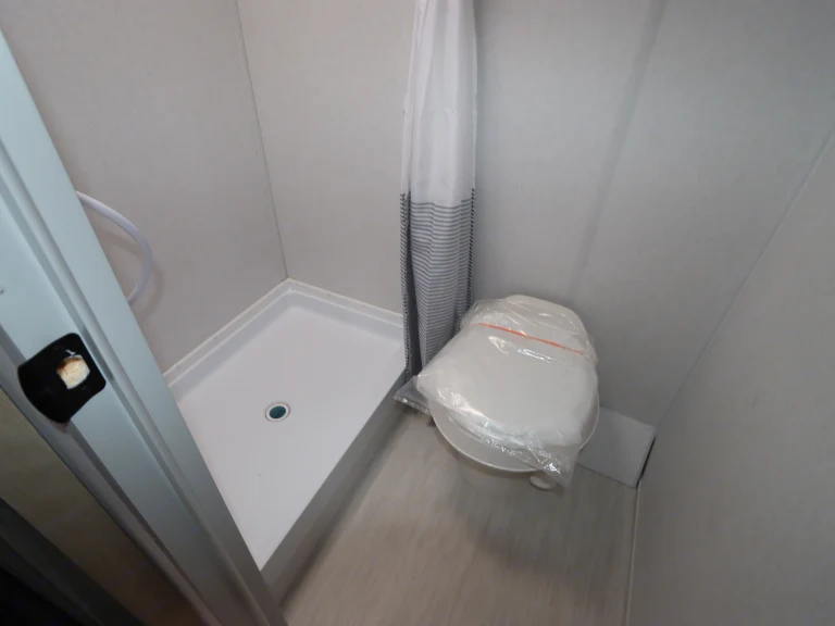 The underbelly is insulated and heated allowing for camping in colder weather and a 13,500 but air conditioner to keep it cool on the hottest summer days.