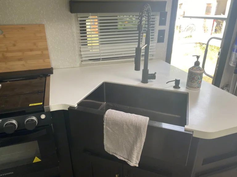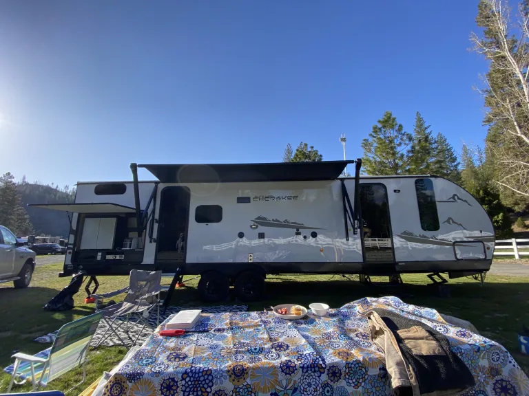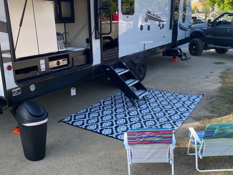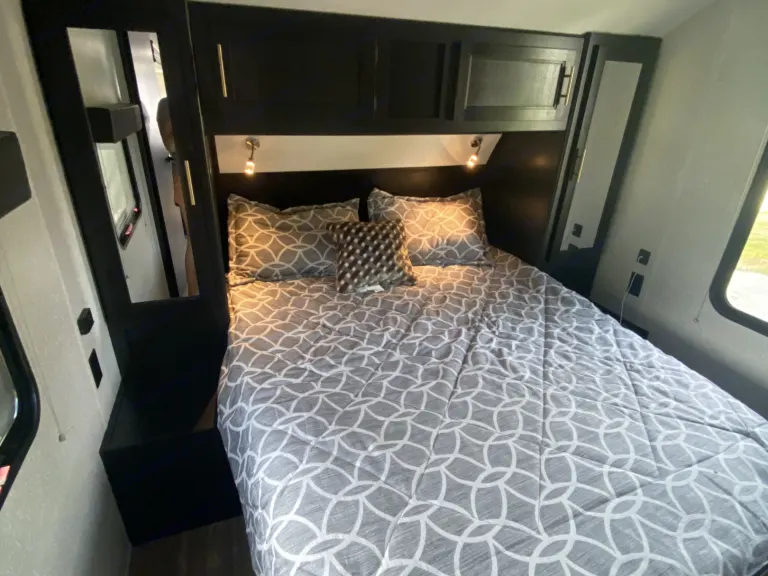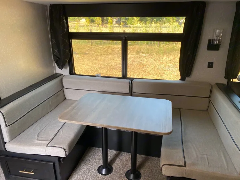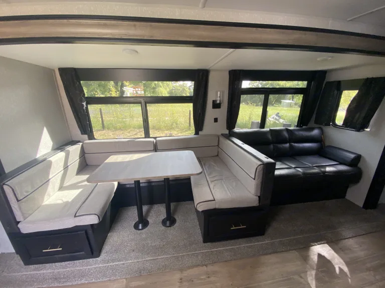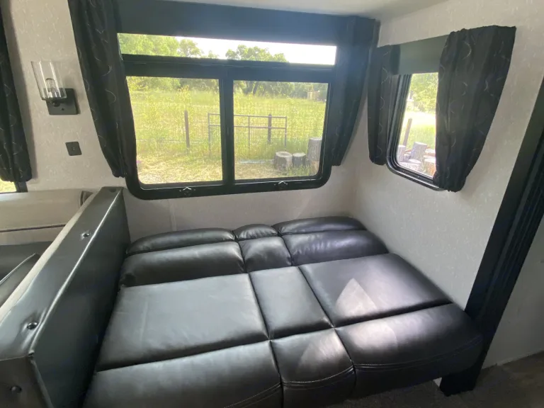 Get ready to make new memories in this beautiful 36’ travel trailer! Equipped with two kitchens, a fireplace, Bluetooth radio, an outdoor shower, and a “garage,” you’ll have everything you need and more on your trip. All you need to do is book a spot at your campground of choice that can accommodate a 36’ trailer with full hookups! We will do the rest. We deliver the trailer to you so you don’t have to do a thing. Pack your bags and we’ll see you soon!What's includedFresh linens, kitchen utensils, two full propane tanks, paper towels, RV toilet paper. RecommendationsWe require full hook-ups (including 30/50 amp) at delivery to insure that everything works properly. An additional $75 dump fee will be added if the black tank will need to be emptied after pick up.Other things to noteNo smoking or pets. We have kiddos that are highly allergic.