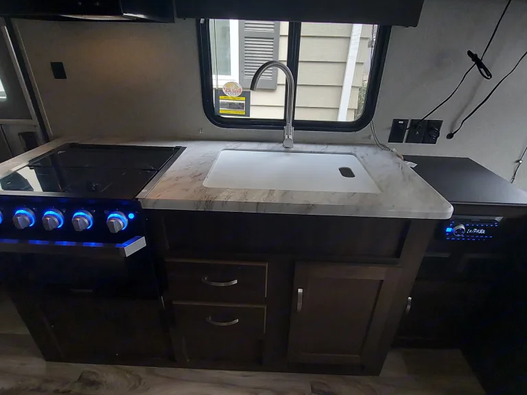 This camper is great for kids and for travel. It fits 6 comfortably. It has 1 queen, 1 full, 1 twin bed. It has a stereo, and comes with coffee pot and coffee. It has a microwave, stove, and oven. The restroom has a standing shower sink and toilet. What's includedCoffee pot, coffee pots, disposable plates, trailer hitch, sway bar.
