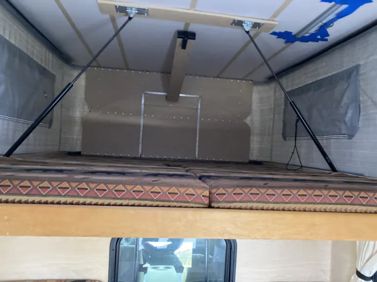 The Finchmeister has a fan, interior/exterior lights, fridge, ARB awning with tent, and bike rack for 1. Run completely on solar.It has two benches on the inside. Bed size is roughly a Queen.