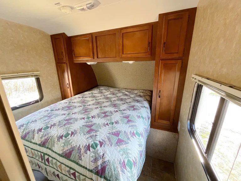 Our 2013 Coachmen Catalina can easily accommodate your large family or group! The bunk room has beds for 5 children (3-4 adults). There is a queen bed in the master with a 3 inch oeko-tex certified pillow-top mattress pad and mattress cover. The U-shaped dinette converts to a bed and the jack knife sofa also folds out into a bed.This Airbnb on wheels has a propane stove, oven, microwave, fridge, freezer, bathtub, and a solid door on the bunk room as well as the master. Music can be played inside or outside using the AM/FM radio in the living area. There is an outdoor kitchenette with a mini fridge and sink. This trailer is equipped with a power awning, power super slide, roof mounted A/C, and a propane furnace for chilly nights.We often have extra toiletries, including bug spray and sunscreen in the bathroom cabinet.We can provide linens for an additional $75 fee.Generator can be provided for additional fees. Please contact us to discuss.This is our personal camper that we enjoy with our kids. Please respect it so we can all continue to enjoy it. What's includedKitchen items provided: