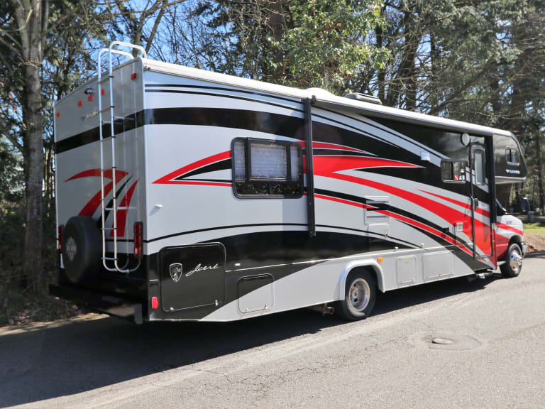 A beautiful custom interior and exterior paint scheme make this motorhome a unique and gorgeous vehicle to take on your next adventure. Interior features includes a comfortable queen sized bed with memory foam mattress, leather sofa, dinette seating for four, 32" Hdtv, Blu-Ray player. The kitchen includes a three burner gas stove, and microwave oven, toaster, Keurig single-cup coffee maker and refrigerator/freezer. With a 40 gallon fresh water capacity there will be plenty of hot water for showers. The separate bathroom offers convenience and privacy. For your outdoor comfort we offer an electric awning, two director-style chairs, and a Coleman gas barbeque grill (additional fees).What's includedThe kitchen is fully stocked with cookware utensils silverware dishes and everything you need for cleanup. Bathroom supplies include towels, toilet paper and hand soap. The master bed will be made with clean linen the other two beds will require bedding for additional occupants.RecommendationsOur preference is to rent our RV to renters who want to find that prefect campground and park. Road trippers might consider another unit.Other things to notePick up time is 3 PM and our standard drop off time is 11 AM. These times can be changed with prior arrangements. Vehicle is installed with tracking system which monitors speed and distance travelled. We respectfully request drivers do not exceed 60 mph on freeways to reduce excessive engine and transmission wear. Speed violations will result in additional fees upon return.
