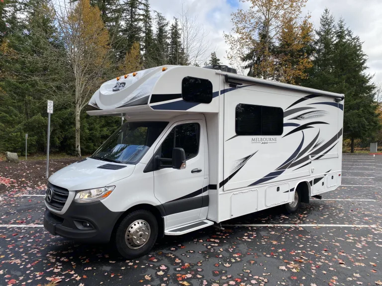 Notice- Until further notice, all bookings require interior and exterior cleaning charge, due to Covid-19. This is automatically added to your quote. Before pickup, the entire RV is deep cleaned, followed by all surfaces, switches, handles etc being double cleaned with pure alcohol. Lastly, ozone machine is used to disinfect the RV, including all ducts for heating and air ank you for understanding.2021 Mercedes Jayco Melbourne 24L is the ultimate blend of ride quality, fuel economy, spaciousness when parked but compact enough to be easily drivable anywhere and into any national park or camping spot! This is a brand new 2021 RV with that new vehicle smell. Powered by 3.0 liter Mercedes turbo diesel, you'll see average fuel economy of about 15MPG, thats almost twice what you'll see out of any Ford based RV- thats about $100 savings per 500 miles driven. It has sleeping accommodations for 5 people, everything is push button electric, from slides, to step and awning. Our RV comes with basic pots, pans, utensils, plates, 2 camping chairs, lighter, can opener, toaster, coffee maker and cooler. We have add ons available depending on your needs- all of those are options with the exception of the prep/sanitization fee.This unit has: