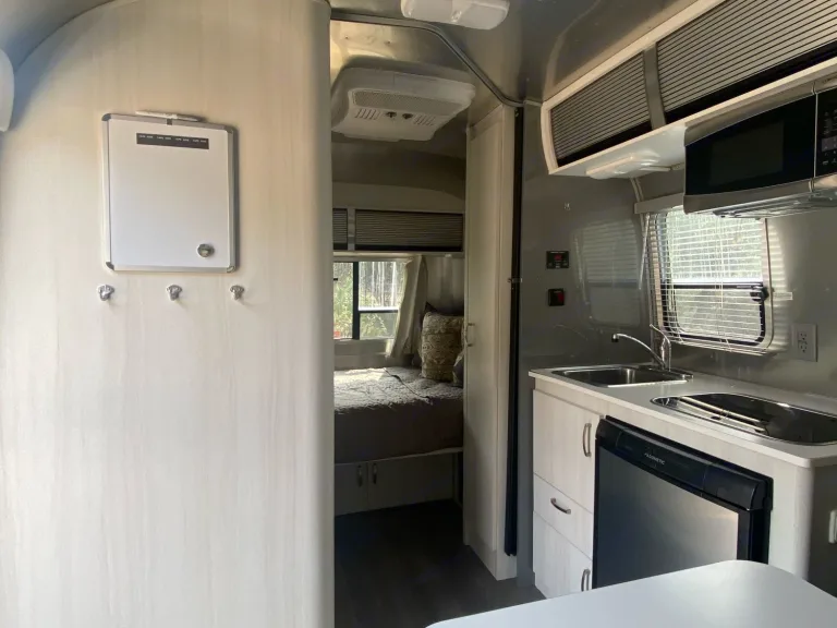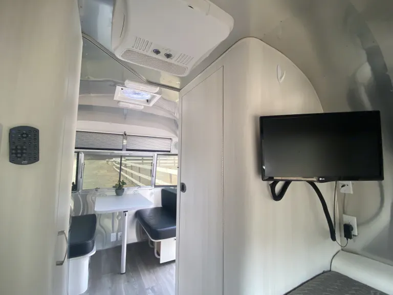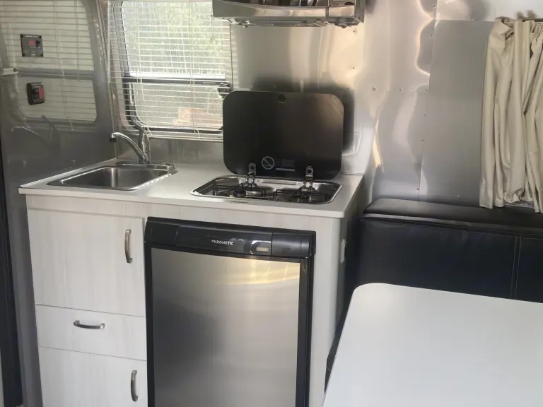 Shore power and water hook upsWhat's includedEverything you need! Fresh linens, cutlery, dishes, pots/pans, kettle, coffee pot, two burner stove, fridge/freezer, 21 gallon fresh water holding tank, city water and power hookups, tv, DVD player, Bluetooth radio with surround sound.Requirements for towing this Airstream:vehicle has the capacity to tow at least 3500lbs 2” receiver trailer hitch