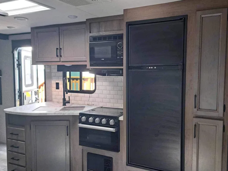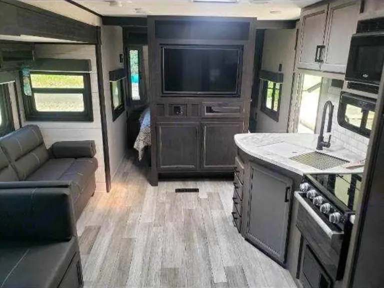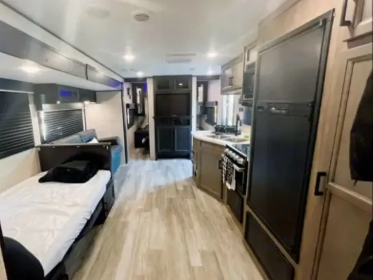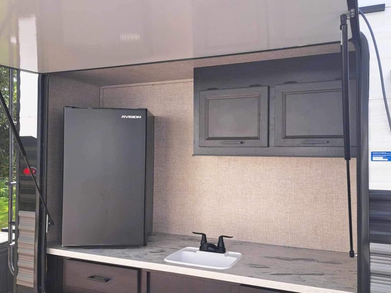 TV hook-up and LED lights.Large outdoor kitchen, bar fridge runs on electric only, small sink with hot and cold water, counter space and storage.Large indoor 10cubic foot fridge/freezer runs on battery or electric. What's includedRental includes: