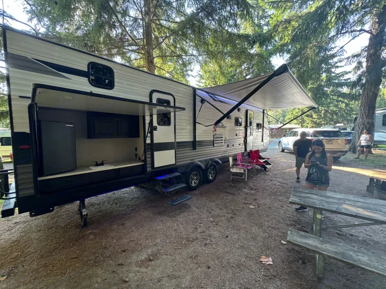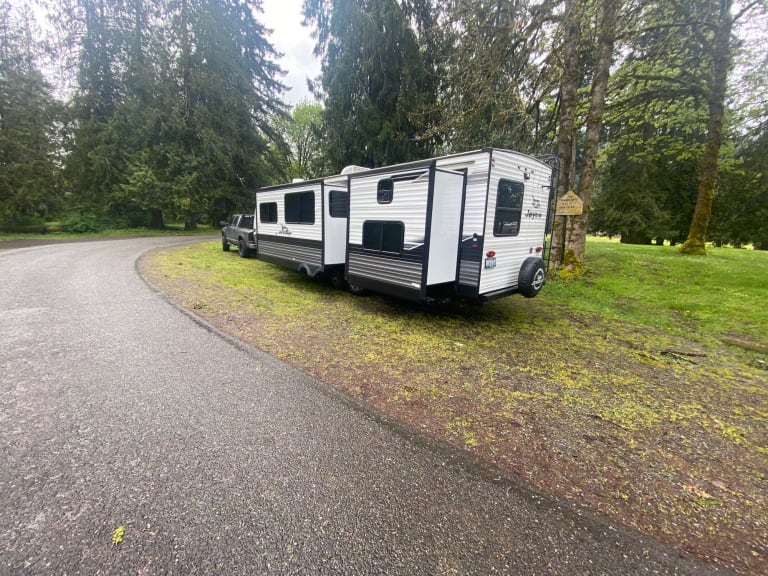 It is a good idea to request a level lot, pull-through is convenient for this length to avoid having to back it in to the site.Absolutely no smoking/vaping/marijuana inside RV or near doorways or windows.Delivery/set-up and pick-up may be available for additional fee, depending on our availability and distance