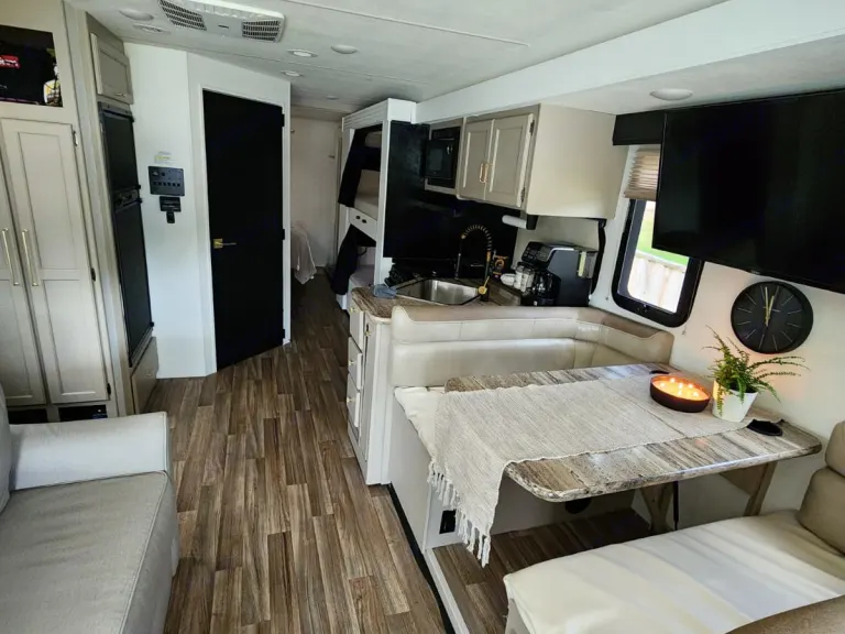 First RV experience for me. It was awesome. The hosts Jeremy and Andre were great! Responsive, helpful, and thorough in getting me and the family set up to have a good trip. We traveled roughly 3 hrs and stayed 2 nights. RV was super clean, bedding and linen fresh, and soft. My 18, 8, 6, and 3 year old children are now trying to convince me to buy a camper; But for now Jeremy and Andre will be my go to!