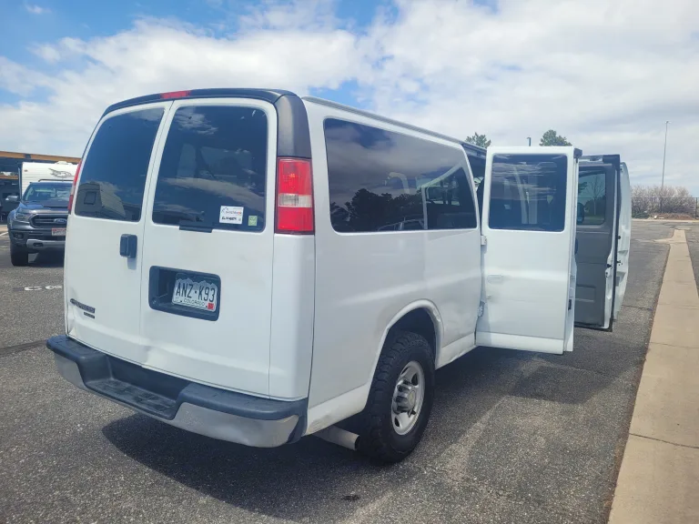 Elizabeth is a 15 passenger van by Chevy This vehicle is set to take 15 passengers. Custom seating arrangement is not available in this vehicle.