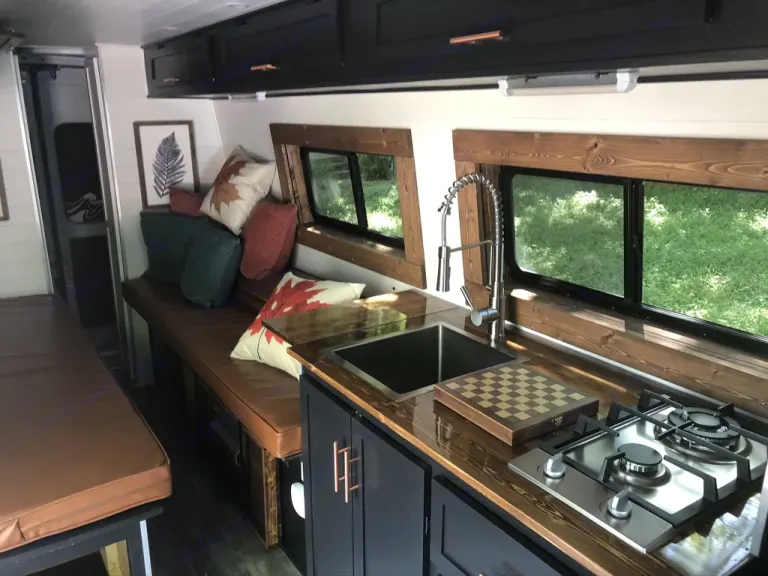 Asher is more like a tiny house than a mobile campsite. It has an older diesel engine with so few miles (33K, last I checked), it drives like new. Because it’s a 2005 T1N model, you can take it south of the border and use lower quality, sulfur-ridden diesel fuel, which I hope to do one day because this engine can handle it.In the meantime, feel free post him up around Austin and enjoy!This van comes with a really nice plumbing system, including an indoor shower and composting toilet. Too perfect for living in the city. With the 42 gallon water tank, endless hot water heater, low-energy fridge and two solid 100 amp solar panels, this is the perfect rig for boondocking (living life without worrying about the grid).