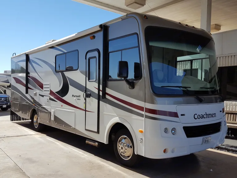 This Coachmen Pursuit 1604 by American Adventure RV Rentals is an RV for rent in Austin, TX. This 2013 Coachmen Class A Motorhome is 32 feet and can sleep 6 people. It has an automatic transmission, a gasoline fuel type, and a fuel economy of 10 MPG.Enjoy the features of this rental such as a TV/DVD, refrigerator, stovetop, oven, microwave, backup camera, and awning to relax under. This non-smoking, pet friendly recreational vehicle has a rental rate of $425/night, with a 3 night minimum. Before we forget, this RV rental also has portable gas BBQ grill, linen package, bike rack, cook station, navigation, and delivery add-ons available, just to name a few. Interested in learning more? Scroll below for more add-on details, rules, insurance coverage, rates and floor plans.