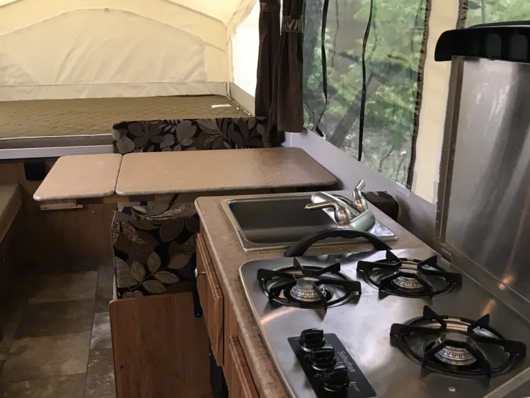 Rockwood and Rollin' with this super clean pop-up camper containing all the amenities you need to ensuring a great camping experience. This camper offers a king size and queen size bed, full size bed, dining table, gas stove that is movable to outside the unit for to enjoy nature while cooking outside. Ample storage, indoor bathroom and sink. As always, AustinRV4Rent is a small home business offering a fully stocked camper. This includes all pots and pans, utensils, bowls, cups, and paper products along with all linens and pillows.