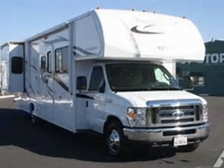 This Fleetwood Jamboree Searcher by American Adventure RV Rentals is an RV for rent in Austin, TX. This 2014 Fleetwood Class C Motorhome is 32 feet and can sleep 8 people. It has 2 slideouts, an automatic transmission, and a gasoline fuel type.Enjoy the features of this rental such as a TV/DVD, refrigerator, stovetop, oven, microwave, backup camera, and awning to relax under. This non-smoking, pet friendly recreational vehicle has a rental rate of $305/night, with a 3 night minimum. Before we forget, this RV rental also has portable gas BBQ grill, linen package, bike rack, cook station, navigation, and delivery add-ons available, just to name a few. Interested in learning more? Scroll below for more add-on details, rules, insurance coverage, rates and floor plans.