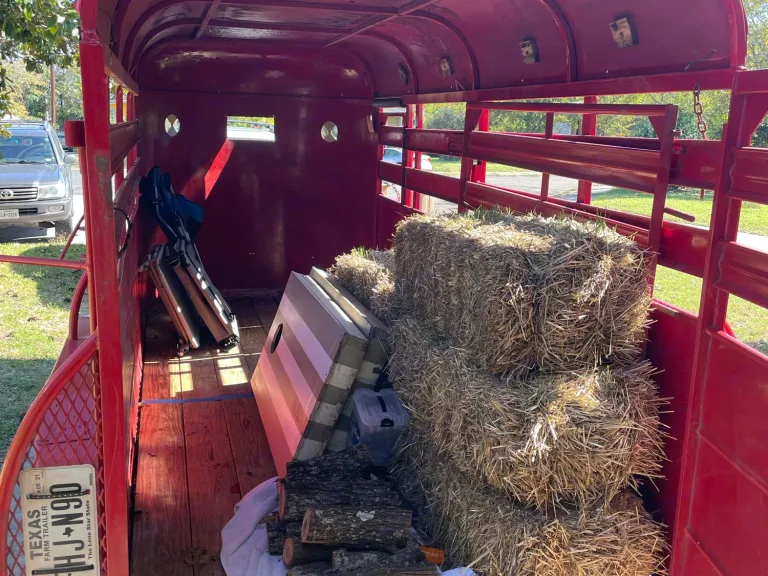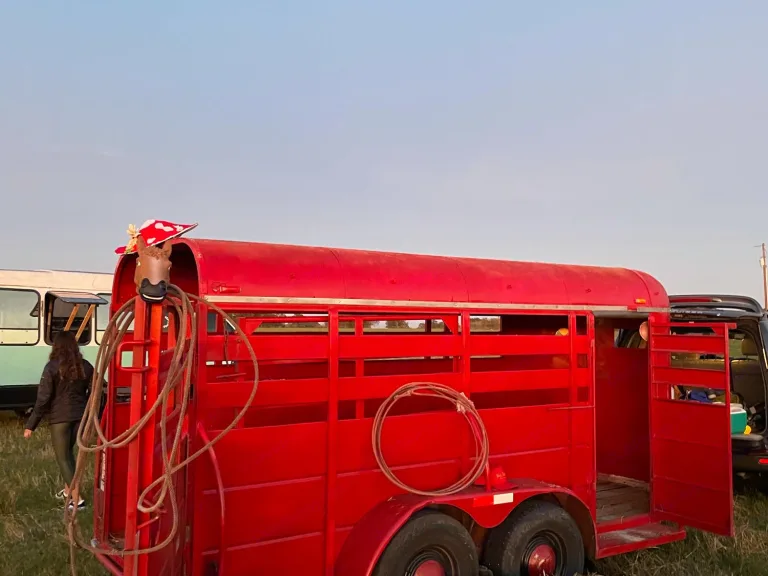 This horse trailer is a vibe on wheels! Loaded with yard games, hay bales, a fire pit, camping table, twinkle lights and more, rent this sweet thang and create an instant vibe! From weddings, to camping, to backyard BBQ’s, this western vibe wagon will provide a lovely, photogenic backdrop that you can both utilize and participate with! No need to waste you day away setting up the space…this centerpiece only takes 5-10minutes to unload and load. In a matter of minutes you can feel like you’re sitting on set for a Disney channel Original movie…it’s as wholesome as it gets. Easy to tow, easy to load/unload, effortless vibes. It’s just That Simple Yall! Let the good times roll!