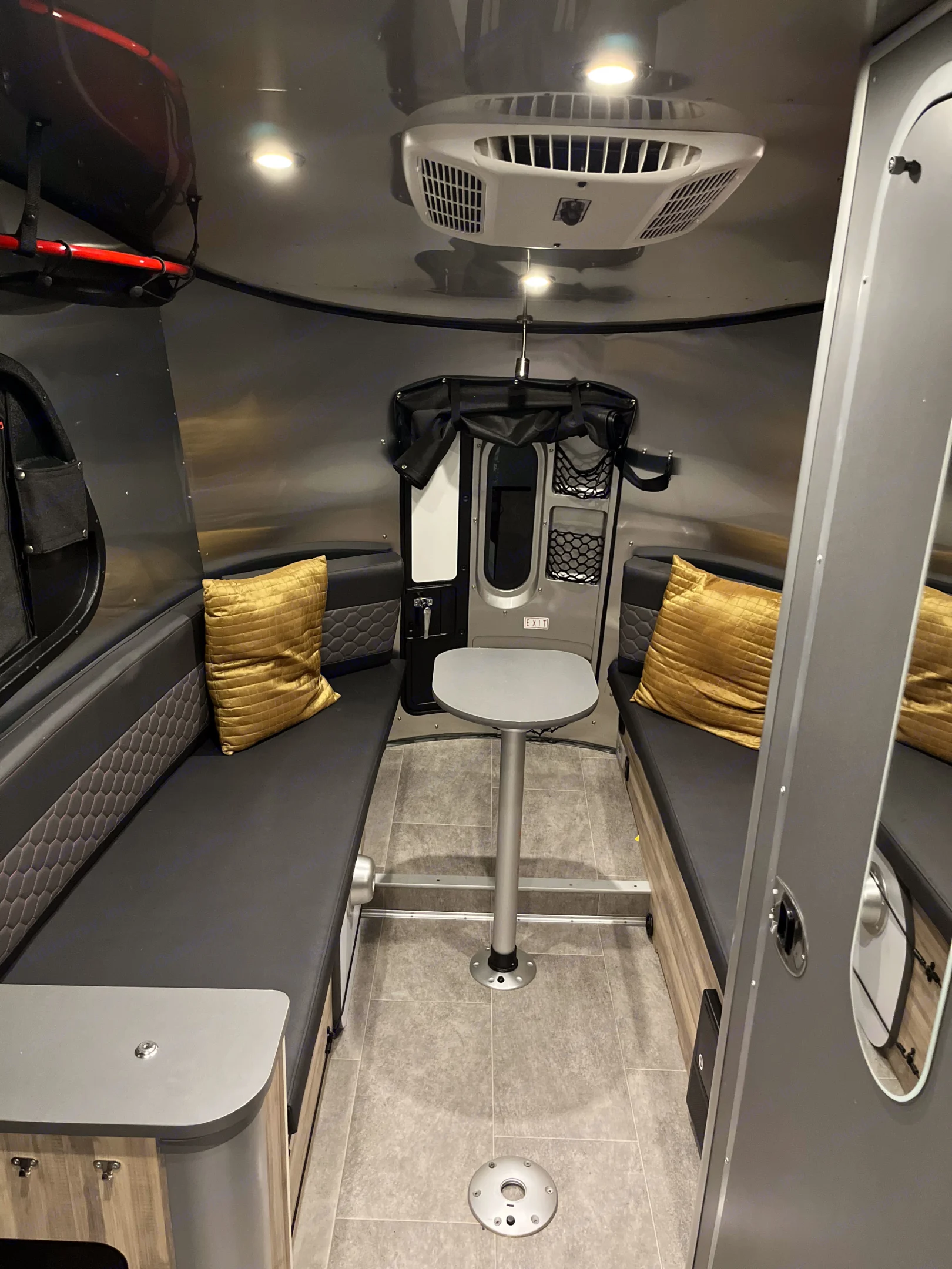 Our Airstream Basecamp is the epitome of luxury glamping.This M-16 Basecamp is in mint condition, looks brand new, has recently been fully serviced, and sits lower to the ground than the X models, allowing easy towing with various mid-size SUVs.The slick, modern interior is versatile, has abundant storage, and has a full bathroom with a shower. You can camp and enjoy your favorite cooked meals using the kitchen equipped with a two-burner propane stove, sink, and microwave.The lounge area turns into a bed, with ample sleeping space where we've comfortably slept two adults and a child. It's the perfect place to rest your hat (or two) in style at the end of the day.Take the trip knowing you've got AC to keep you cool during those long summer months or a heater to warm you up as the seasons change.All you need to bring is yourself and some sleeping bags; the Basecamp covers the rest. What's includedComes with two chairs, camping cookware, a camping table, and an outdoor mat. Other things to noteThe blackwater tank must be emptied upon return. Please do so to avoid an additional fee of $195. Please note: no furry babies or pets allowed.