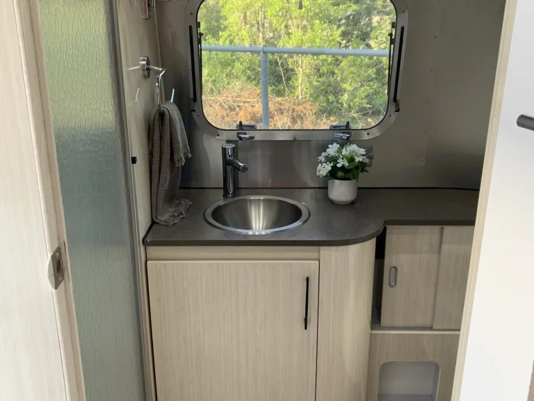 Our first trip in an Airstream. Easy to drive and maneuver. Kitchen is well-stocked even with a coffee maker and toaster. There are plenty of silverware and utensils, even breakable dishes(!). There is a Sleep Number bed. There are towels, sheets and hangers. Fireside was great to work with. Easy check out and check in. There is a hole in the subfloor in front of the kitchen sink.