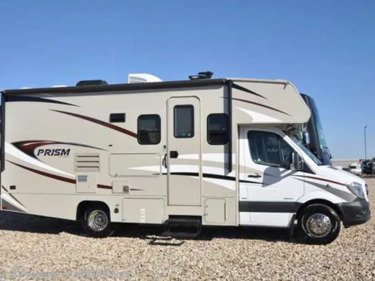 Unlimited Mileage!! We offer special military, first responder, and repeat customer discounts! 2017 Coachmen Prism 2200 gives you gas economy for an RV with up to 18 MPG!! This 2017 Coachmen Prism 2200 LE has a great new floorplan that can accommodate up to six comfortably. It features a single, large slide. Unique to this Prism floorplan is that the queen bed and U-dinette are in the same slide. The many benefits this allows includes increased floor space and a large rear wardrobe. To separate the bedroom from the living area, there is an extendable entertainment center cabinet. Additional Features of this 2017 Coachmen Prism 2200 LE: Prism Lead Dog Value Package Hi-Gloss Color Infused "Carmel" Lamilux 4000 Sidewalls Bluetooth Touch Screen Radio with Back-Up Monitor and Sirius Radio LED Taillights and Running Lights LED Ceiling Lights Throughout Pop-Up Kitchen Recept and USB Ports Stainless Steel Wheel Liners 3.6 KW Onan LP Generator 3,500 lb. Towing Hitch with 7-Way Plug Rear Exterior Roof Ladder (N/A 2250LE) Spare Tire Upgraded Swivel Driver and Passenger Seats Roller Bearing Drawer Guides Throughout Attwood 3-Burner Cooktop with Oven Child Safety Net and Ladder (N/A with Front Entertainment Center) Roller Day/Night Window Shades U-Shape Dinette 32" LED TV/DVD Upgraded Foldable Mattress Side View Cameras Cabover Power Vent Fan w/ Cover