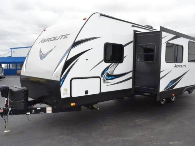Great Lite Weight Bunk Bed Floorplan By Aerolite!! 32 Feet long, but this one weighs only 5,400 lbs!! Two Entrance Doors With One Leading To The Bathroom To Avoid Walking Through The Entire Trailer To Use It!! Living area has a slideout, that makes it extremely roomy for 4 to 6 people. The trailer is like new, and perfect to take your next adventure in.