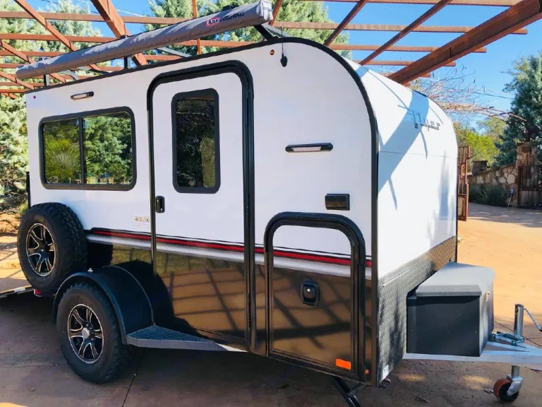 Very lightweight (2000#) toy-hauler/camper with kitchenette. This camper can be towed by most SUVs and trucks. You can take up to 2 dirt bikes or 1 ATV with you! There is plenty of cargo space for all your camping gear and mountain bikes. There’s also a roof rack if you’d like to attach a kayak to the top. Book your next adventure now!