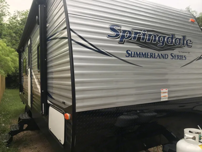 The Springdale Summerland offers a variety of amenities such as ample cabinet space, queen size bed that is private from the rest of the camper, folding dinette seating four which converts into a bed, leather couch that also converts into a bed, two large bunk beds (300 lb weight limit) stove, range, microwave, large refrigerator, separate bathroom sink, and shower.This campers dry weight (without cargo) is 4,790 lbs and would require a vehicle such as; Toyota Sequoia or equivalent large SUV, 1/2 ton truck or larger like an Ford F-150. The vehicle must have a towing capacity of at least 6,000 lbs and have a Reese type hitch and light kit installed (7 pin preferred) though we have adapters. We supply the receiver and weight distribution kits as well as the break control unit.Pickup Times ARE BY 9AM BUT CAN BE Flexible With Prior Arrangements! Drop OFF Times ARE Prior TO 9PM DAY OF Return Unless Later Times ARE Arranged.