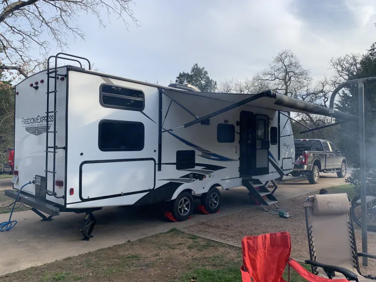 This trailer has a queen bed room with a door and a giant window in the front. The dining table and sofa both convert into beds if needed. There are two bunkbeds in the back. Additional features include a small bath tub for the kids, an outdoor shower, outdoor kitchen, a large 16' awning. The unloaded vehicle weight is 5881 so it is towable by most 1500 pickups.If you are a first time camper or not familiar with the trailer it comes with detailed check lists with pictures and diagrams on how to set up everything in the trailer.