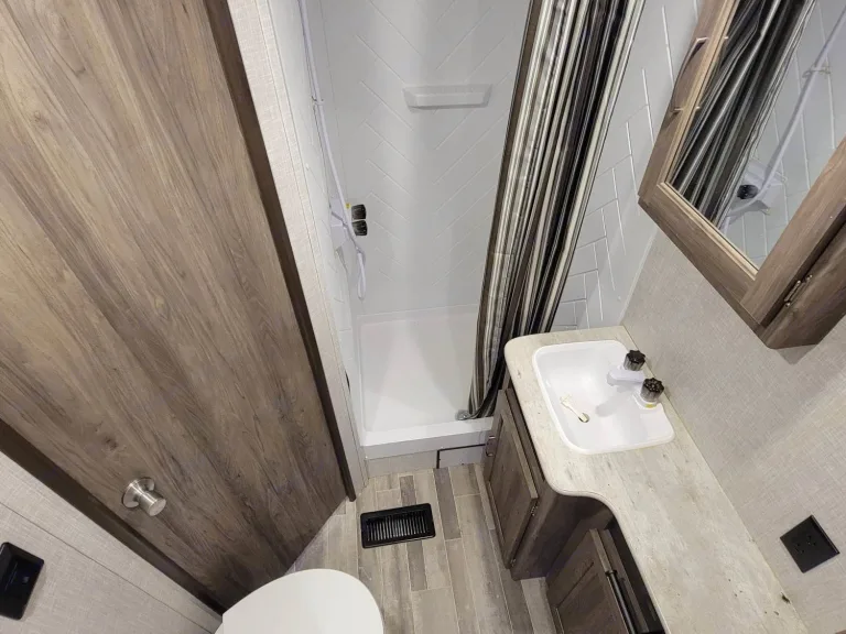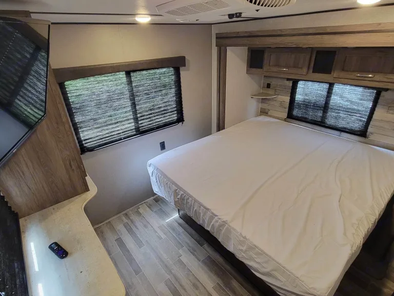 Step inside, and you'll discover a spacious and meticulously designed interior. The Zinger is configured to maximize comfort and functionality, ensuring you have a cozy retreat at the end of each day's adventures.Key Features:Sleeping Accommodations: This RV comfortably sleeps up to six travelers, with a master bedroom featuring a queen-size bed, convertible sofa bed, and a dinette bed for additional sleeping spaces.Kitchen: The fully equipped kitchen includes a refrigerator, stovetop, microwave, and sink, making meal preparation a breeze while on the go.Bathroom: Enjoy the convenience of a private bathroom equipped with a toilet, sink, and shower, ensuring you have privacy and comfort during your travels.Entertainment: Stay entertained with modern amenities, including a flat-screen TV and a stereo system, ensuring enjoyable evenings with your travel companions.Climate Control: Keep the interior comfortable year-round with an efficient air conditioning and heating system.Storage: Ample storage space is available to accommodate all your gear and essentials, keeping your living area organized and clutter-free.Two Slide Outs: The two slide-out design provides additional living space, creating a roomy and comfortable interior for your travels.Why Choose the Travel Trailer - 2 Slide - Zinger?Our Travel Trailer - 2 Slide - Zinger is the perfect choice for travelers who seek both comfort and spacious living in their RV experience. Whether you're traveling with family or friends, this RV provides all the essential amenities for a memorable journey. With its modern design and convenient features, it's your home on wheels, ready to take you to your dream destinations.