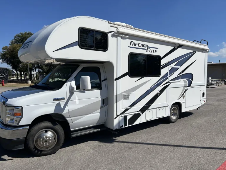 Enjoy the perfect blend of comfort and maneuverability in this 2021 Thor Freedom Elite 24-foot Class C motorhome. Whether you’re a first-time RVer or a seasoned road tripper, this rig is easy to drive, simple to set up, and packed with everything you need for a great adventure.Inside, you’ll find a cozy queen bed, a roomy over-cab bunk, and a convertible dinette that together sleep up to five guests. The fully equipped kitchen features a refrigerator, stove, microwave, and sink, along with plenty of storage for food and gear. The private bathroom includes a toilet, sink, and shower so you can skip public facilities and stay comfortable anywhere.Enjoy modern amenities like a backup camera, touchscreen dash, generator, TV, A/C, heat, and a power awning for shaded outdoor lounging. The compact size makes navigating campgrounds, national parks, and city streets a breeze—no special license required.Delivery and setup are available, and pets may be welcome with prior approval. Whether you’re planning a weekend getaway, a family vacation, a festival trip, or a cross-country journey, this Freedom Elite is road-ready and waiting for your next adventure.Let the memories begin!