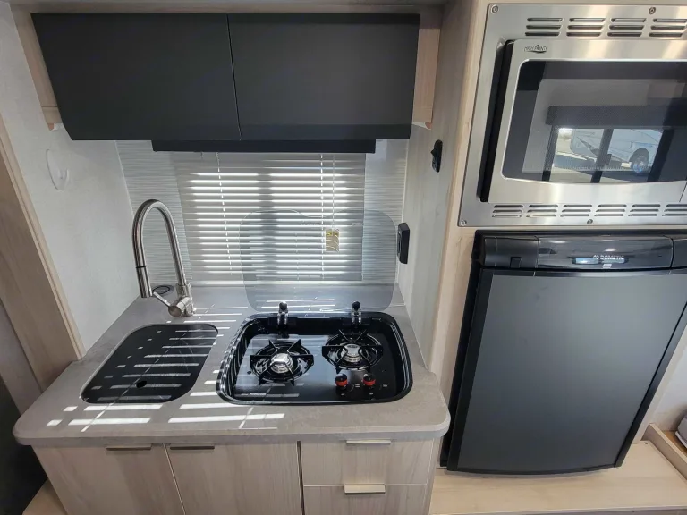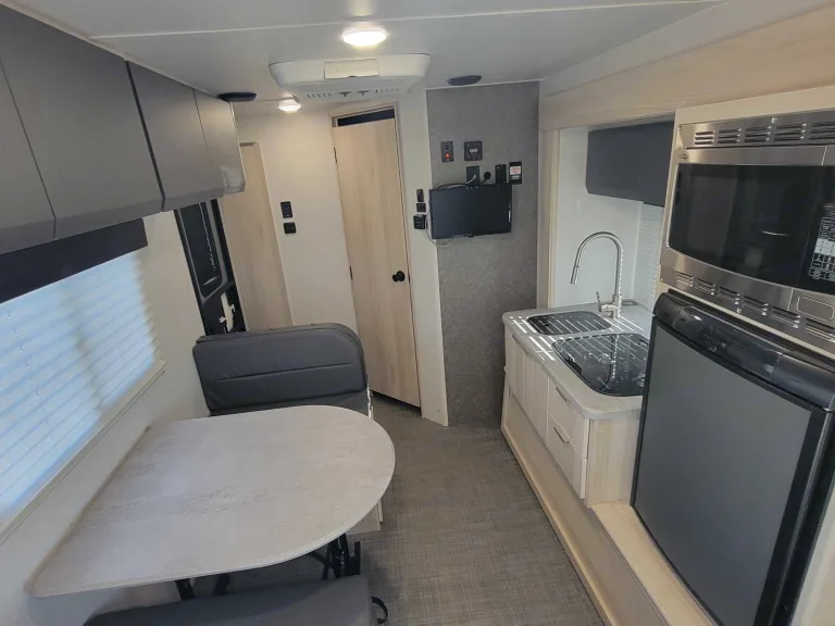 Sleeps Up to 3 – Features a queen bed and convertible dinette.