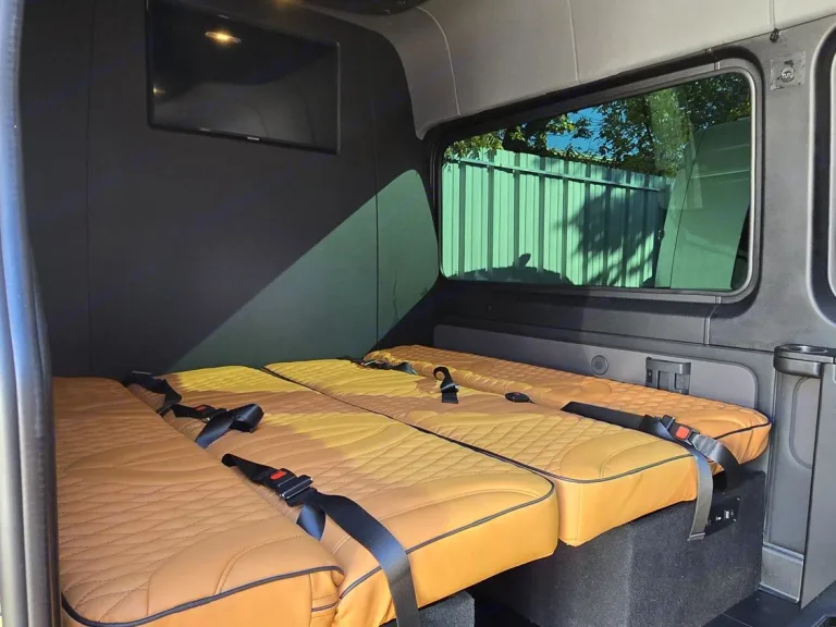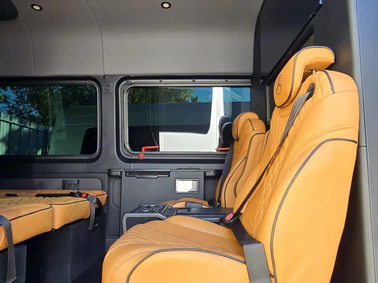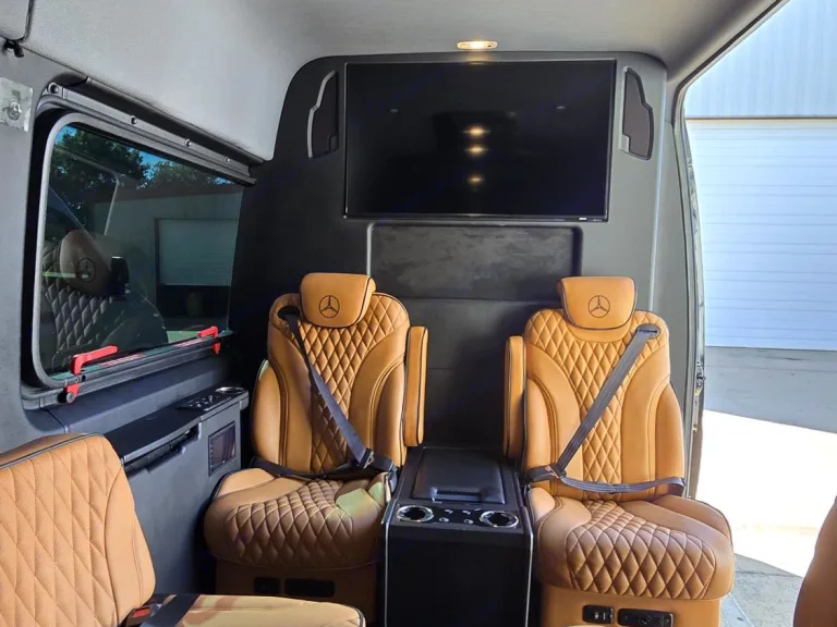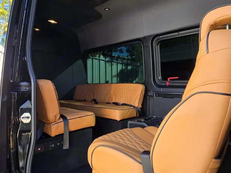 A 2022 Mercedes sprinter van fully customized. It comes with a electric partition, 2 tvs with hdmi hook-ups, 2 massage chairs heated/cooling, couch that converts to a bed, fridge/freezer, wifi, led lighting, & a pull out table. Other things to noteNo smoking.Pets will incur a extra cleaning fee.