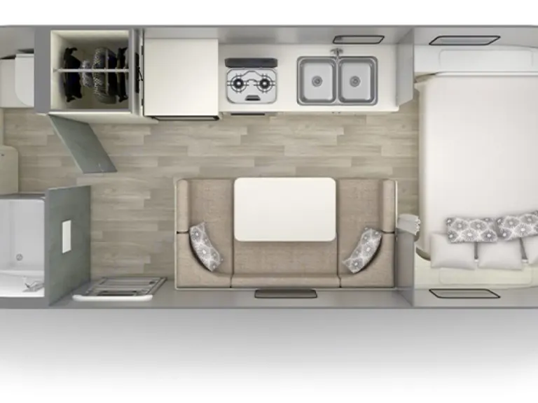* Ample Storage: Keep your belongings organized with plenty of storage options, including roll-top overhead cabinets and under-bed storage.
