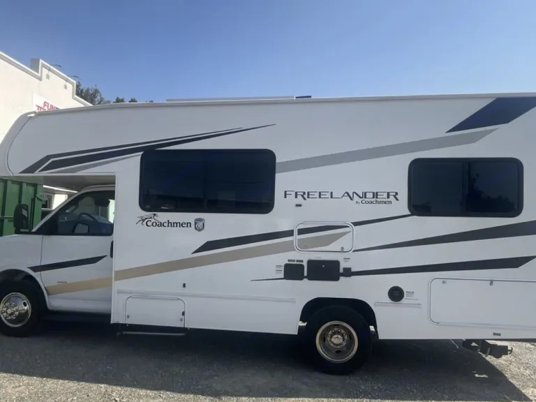 This versatile motorhome features a multi-function bedroom/cargo bay area with a Murphy queen bed which can be stowed away during the day and plenty of overhead cabinets and drawers to store your things. More sleeping space can be found in the bunk area over the cab. The dining area has a spacious 44” x 76” J-lounge with pullout extension for extra room to stretch out. The kitchen has Appalachian Maple cabinetry with hardwood cabinet doors and drawer fronts, plus one-piece thermofoil countertops for a stylish look that’s easy to clean. Enjoy cooking with the three-burner cooktop, microwave oven, and stainless steel farmer's kitchen sink with high-rise kitchen faucet.The Freelander Class C gas motorhome by Coachmen is a wonderful choice for anyone looking to get out on the road. A wide variety of floorplans and features offers something for everyone. The Azdel composite sidewalls and seamless one-piece roof membrane provide a solid structure to enjoy all your trips. Conveniences like storage above entrance door with an Hdmi and charge station and reclining cockpit seats are standard, along with a rear color backup camera, a premium showerhead and faucet, and one-piece thermofoil countertops. The mandatory Explorer Package includes an exterior shower to rinse off before entering inside and an on-demand tankless water heater for hot water fast. Come find your favorite one today!Options: