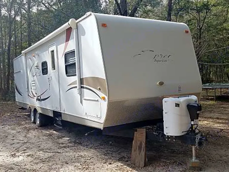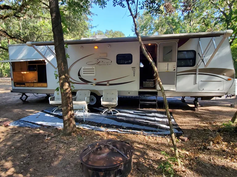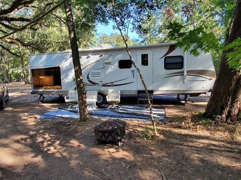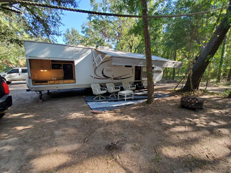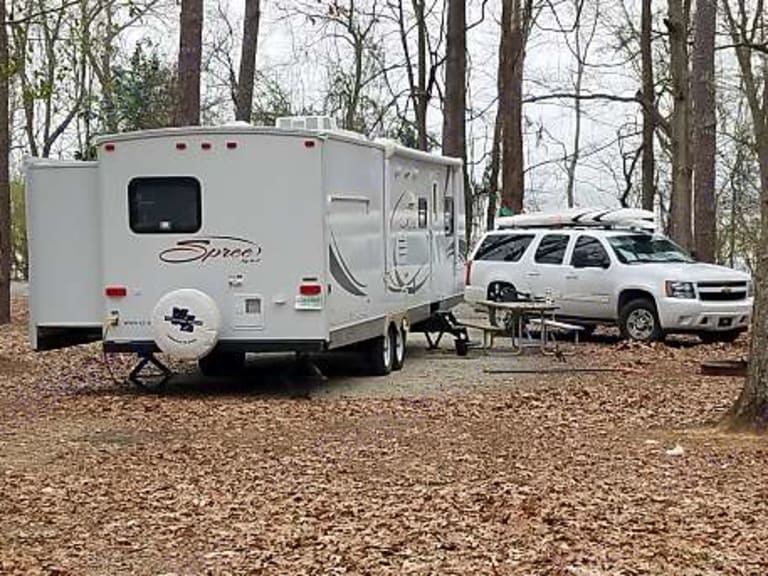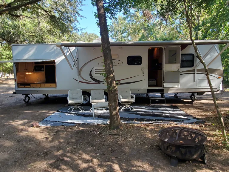 Please read the last paragraph for pricing and rules and exceptionsA well kept unit sure to give your family some fun memories! Sleeps 10 plus with pets considered. Please inquire. The bunkhouse will sleep 6 easily. Two double beds, a single/twin bunk, and a trundle pull out (possibly 7). Queen bed in master. A pull out couch for 2 and U-shaped dinette will accommodate 1-2 more. I have a supply hose with regulator and filters for clean water and a quick hook up. 30 amp service. AC and heater work great. This is a comfy unit with plenty of room. It pulls nice and there is a sway bar. I installed an electric jack to make things even easier. Not too big, and not too small. Overall length is 34 feet. This is the perfect family camper and under 7,000 pounds. Don't hesitate to email if you have any questions.40 gallon freshwater32 black32 greyPlease note: I can't change the pricing options. Pricing is $140 per night. $840 per week. $2595 per month unless otherwise negotiated. A cleaning fee of $60 applies to clean the tanks. Pets are allowed only with discussing first and a $50 pet fee will apply. Jimmy Lewis sup boards and Carolina perception kayaks are also available for rent. There are reviews on RVShare and Airbnb. Delivery available. Free delivery to mount pleasant koa with week or more rental. This is also available to rent onsite for $69 per night and is set up like an airbnb with linens and basic essentials for on site stays. If you have your own camper, a second site is available with full hook-ups for $49 per night. We are six miles north of Boone Hall Plantation.There are now two full hook up sites located on our secluded property just 4 miles north of the Mount Pleasant SC KOA available for just $49 per night hook ups included. Accommodates all trailers and coaches 60 feet long or more if need be. Asphalt and limestone pads have recently been put in. W/E/S/C.Unit can now be rented on our property for just $69 per night.