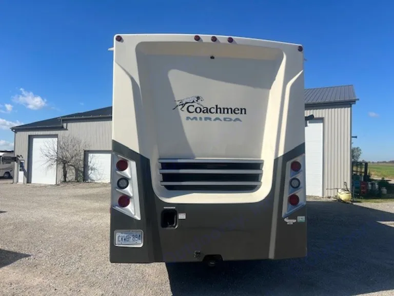 Rare bath and a half model with a full bathroom in the rear master bedroom and a half bath in the center of the motorhome