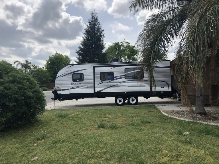 This half-ton towable, pet friendly, kid friendly camping trailer will have you wanting to trailer camp full time. Don’t believe me just watch!She comes equipped with her own private bedroom with queen size bed, 3 bunks in the back for the rowdy kids (or drunk friends), a bathtub/shower for the babies to splash and play in, an outdoor shower station to rinse off Fido and those muddy bicycle wheels. Imagine yourself bbq’g outdoors under the power awning, listening to the radio, with the LED lighting while the children (or drunk friends) dig for bugs under a rock 10’ away.Don’t forget the ease of the electric power hitch and electric leveling jacks. Sorry ladies, you won’t be getting that memorable plumbers crack pic of dad this time because he’ll be operating the stabilizers by remote instead of from underneath the trailer. Don’t be threatened by her size, she is quite long for a half-ton towable but she’s super easy... to tow, even a 30 year old stay-at-home mom, like myself, has drug her behind the pick-up.