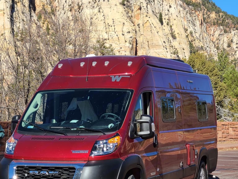 Ruby is a beautiful 2021 Winnebago Solis 59 px! She is the Only camper van on the market with a heated bathroom! She also is one of the few camper vans that can sit and sleep 4 people. If you want the real camper van experience this van is the one to take on an adventure. The beauty of having a van is you can park pretty much anywhere and you will have everything you need from electricity, water, a/c, and heat to a fridge, stove top for cooking, solar panel for extra energy, and two very comfy beds! No need to park at a camp ground, this van can fit in any parking spot on the beach or in the mountains. Ruby also has a back up camera and a rear view mirror camera. She's built on a Ram promaster 3500 and comes with all the latest safey features, including lane change assistance for those sometimes hard to see blind spots. This van is so easy to drive, you just have to be cautious of the 9 ft 6 inch height of the roof. No drive thru's or parking garages in rubys future :) Enjoy hot showers, hot meals, and easy access-ability in this van. Ruby comes equipped with upgraded All Terrain Tires plus snow grade traction if needed. This lets you go anywhere and no chains needed. This is the ultimate #vanlife! Come see for yourself :)What's includedFresh linen, pillows, pots/pans, basic seasonings, plates, and utensils, trash bags, biodegradable soaps, towels (4), android and iphone chargers, phone holder for driver, hose to spray off outside the back doors, and shower curtain for back end of van if you want to shower outside.RecommendationsAll of california, any of the national parks, including zion, death valley, joshua tree, etc. I would not recommend taking the van to extremely hot places in the summer unless they cool down at night. The AC works great for inside the van, but the poptop has trouble staying cool if it's really hot at night. Northern areas, or mountains would be the best for summer time. In the winter you can take it anywhere that temps dont drop below freezing.Other things to noteStrict rules: NO SMOKING, NO PETS.