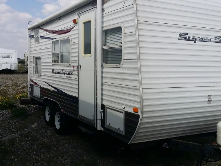Enjoy a get away to the great outdoors in our home away from home!All of the perks of camping without having to wake up with a deflated air mattress, a rock in your back and the 50 yard dash through damp grass to the outhouse; nope not anymore! Crawl out of your comfy bed feeling fully rested and meet the day feeling great.Trailer has AC, Microwave, Stereo, Duel 20 lb propane and Battery. One permanent full size bed, one bunk. Sofa and Dinette convert to make twin size beds. Comfortably sleeps upto 6.Please reach out if you have any questions as we would be happy to share our home on wheels with you and your family.Check youtube video (<3 min): https://www.youtube.com/watch?v=PZo8U6j1A9IOtherOther info: - Includes pots & pans/ disposable cutlery, plates, glasses etc.Please bring your own towels & bedding (can be provided on request) at no extra cost.Dry weight is 4500 lbs, 7 pin plug for wiring.