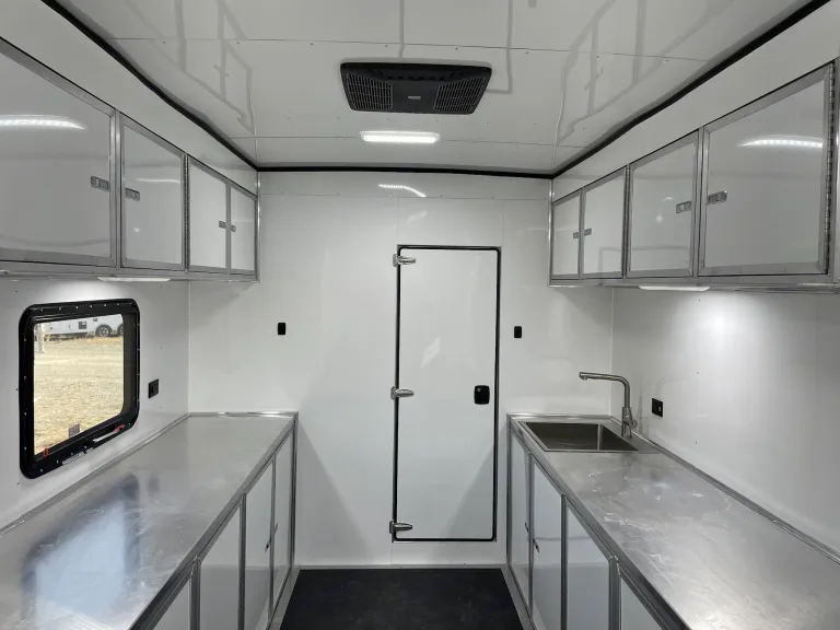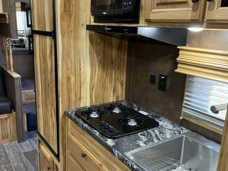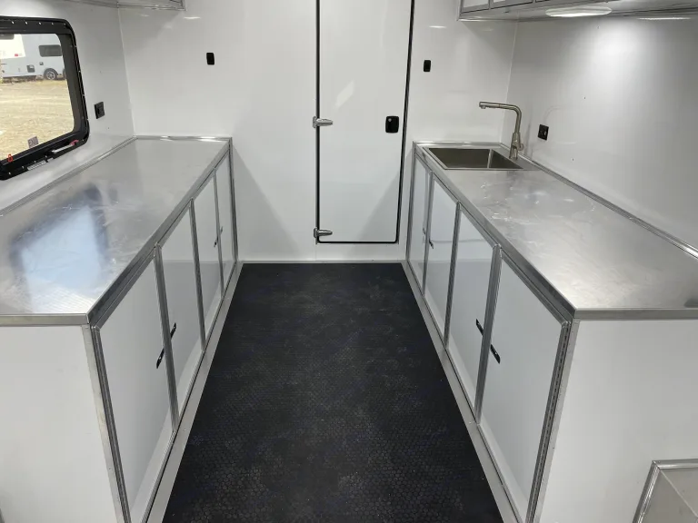 This Toyhauler is one of a kind with a full living quarters in front and a Kitchen prep area in the back with cabinets, countertops and a full sink. There is an on board fueling station for toys or the portable generator. There are 2 tvs one in the bedroom and main living area. What's includedFresh linens