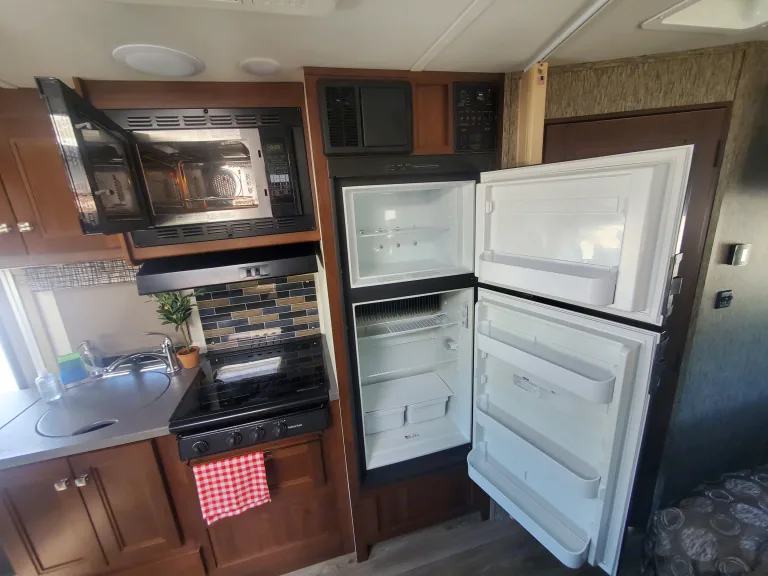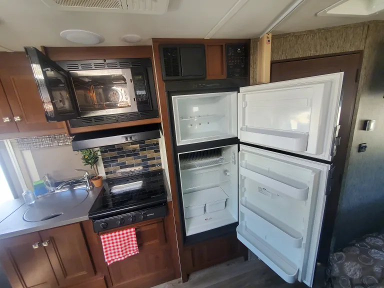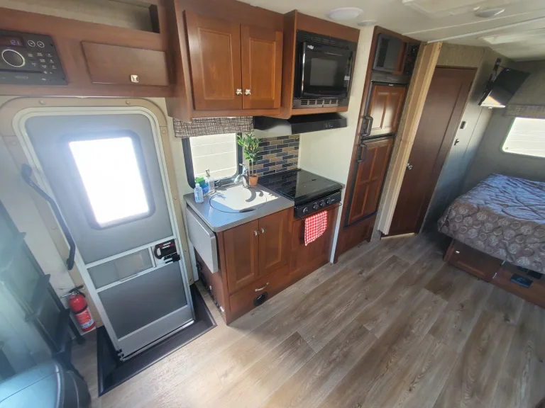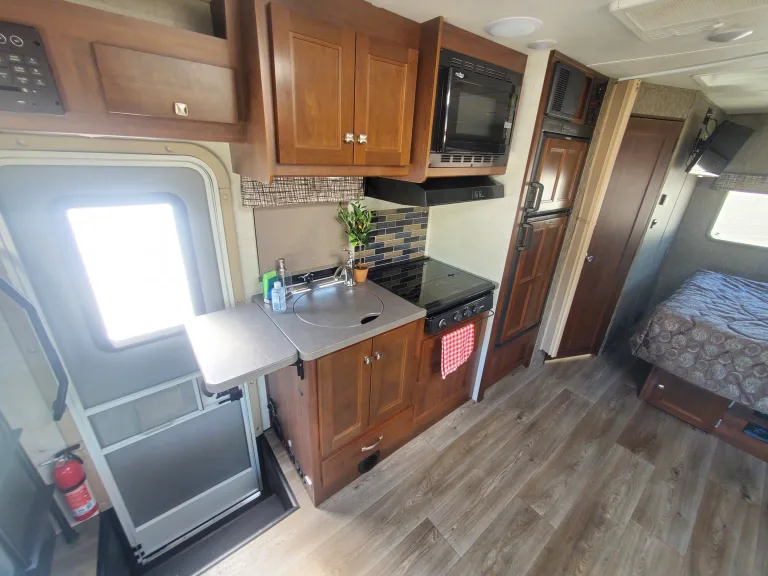 Basic amenities included like pots and pans, Cooking and eating utensils, cups and plates, roasting sticks, waffle maker, toaster and coffee maker. Hand towel for the bathroom 2 rolls of TP, 2 dishwashing cloths, and a clean scrubber sponge for dishes with dish soap and two drying towels. ( Many other little things that you might find useful!) Bedsheets, camp chairs and a grill are included for a small extra fee. We walk you through how to set up and use everything in the RV. You will also have our cell numbers in case you have any questions before and during the trip. We hope you love traveling in our RV as much as we do!