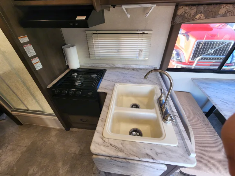 Basic amenities included like pots and pans, Cooking and eating utensils, cups and plates, roasting sticks, waffle maker, toaster and coffee maker. Hand towel for the bathroom 2 rolls of TP, 2 dishwashing cloths, and a clean scrubber sponge for dishes with dish soap and two drying towels. ( Many other little things that you might find useful!) Bedsheets, camp chairs and a grill are included for a small extra fee. We walk you through how to set up and use everything in the RV. You will also have our cell numbers in case you have any questions before and during the trip. We hope you love traveling in our RV as much as we do!