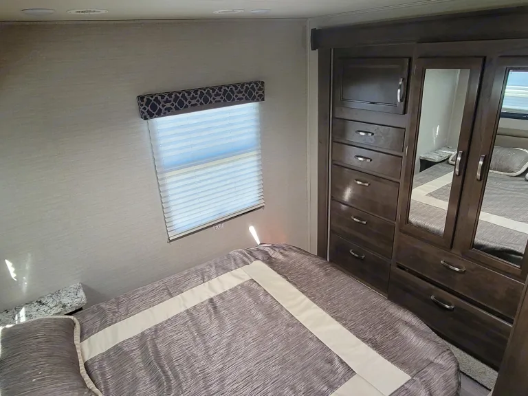 Then in the back there is an RV queen Bed for 2 adults.