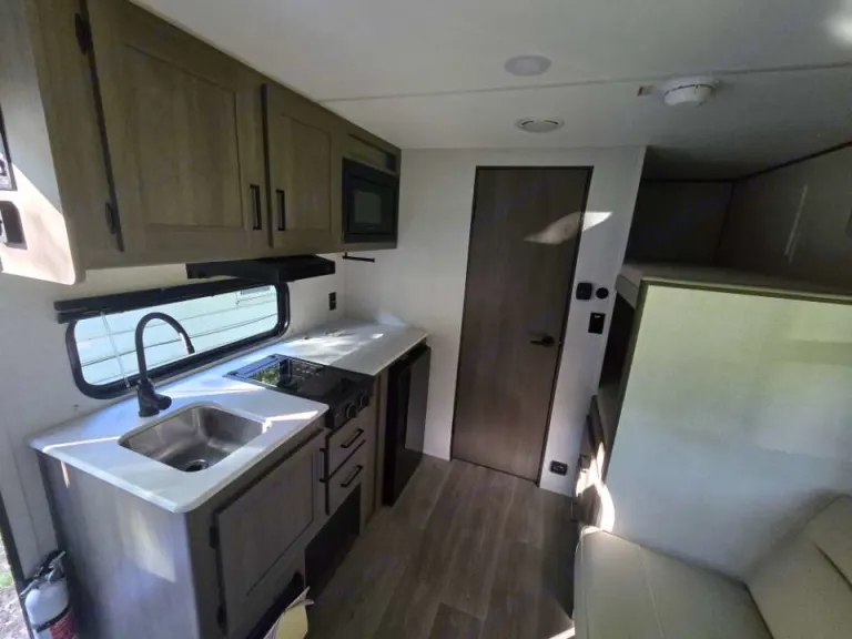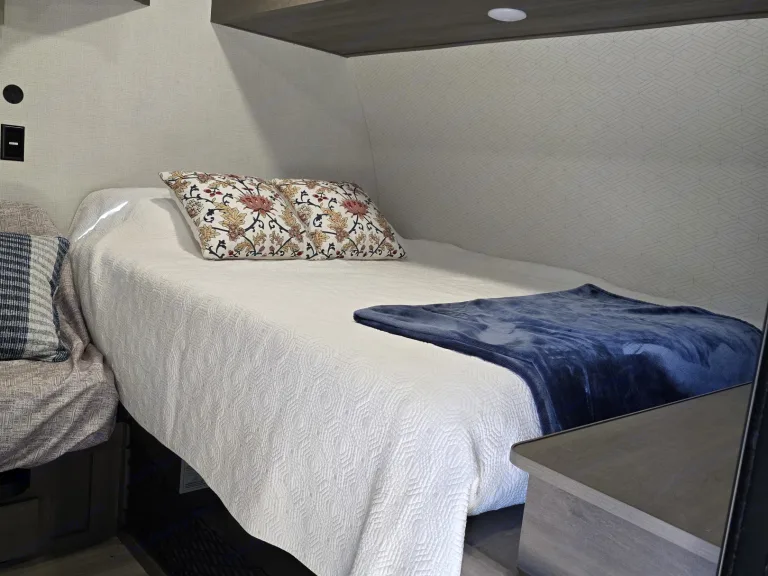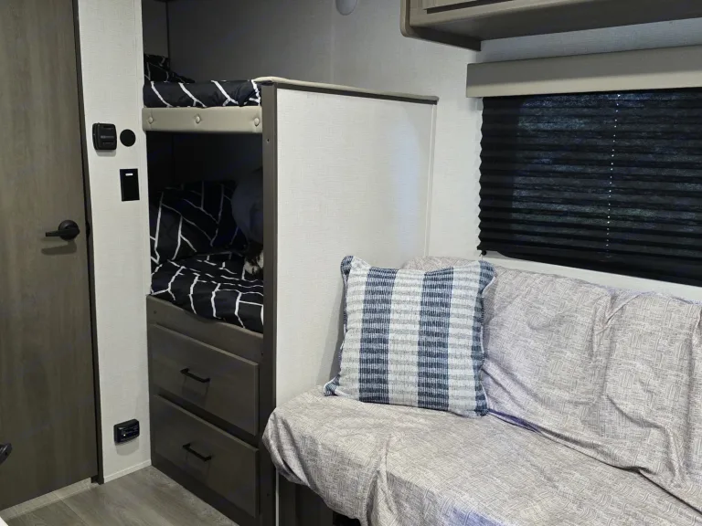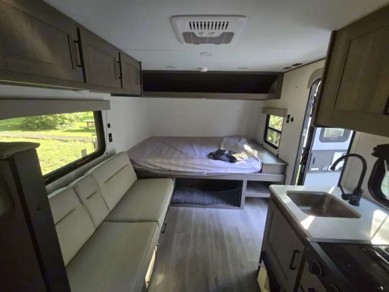 Hit the road with this well appointed Grand Design Transcend One! Perfect for any weekend getaway. This camper has everything to need to feel at home! A queen bed, bunk beds, perfect for kids or extra guests, sofa bed, and a pull put dining table, a spacious bathroom with shower and toilet, and a modern kitchen. With comfortable sleeping for the whole family, modern amenities, and Grand Design's quality build this camper is ready for your next adventure! What's included• Linens
