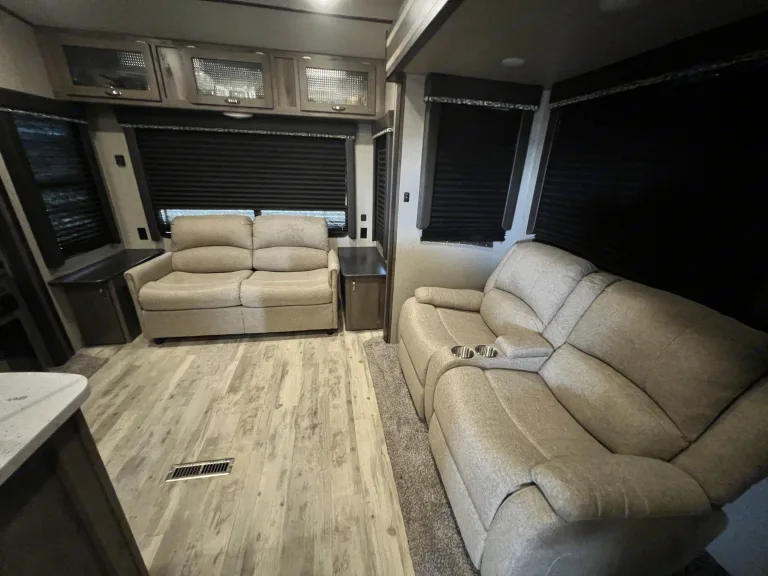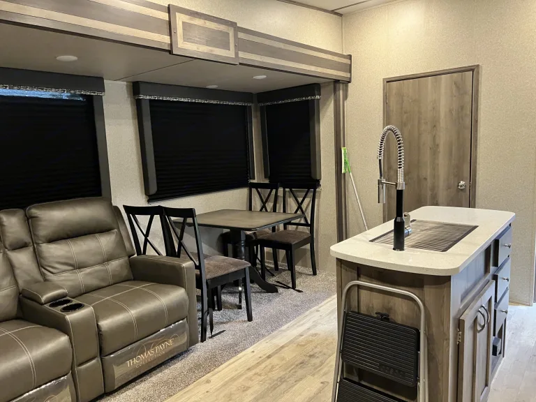 " 5th Wheel Delivery & Pickup only"This Rear entertainment Family unit is. Has the room for each family member. Nice size rear couch-(queen spare bed) & recliner. Island kitchen with the room to cook a nice meal. Dinning space for all, next to privet (Teen) room w/ couch (queen spare bed). Also a Kids loft 2 twins in the hallway/entry-way. Hall-way Bathroom w/ plenty of room. Then best for last, Front Master Bedrm w/ full size Queen good size closet next to the Waser/Dryer for the extra long week.