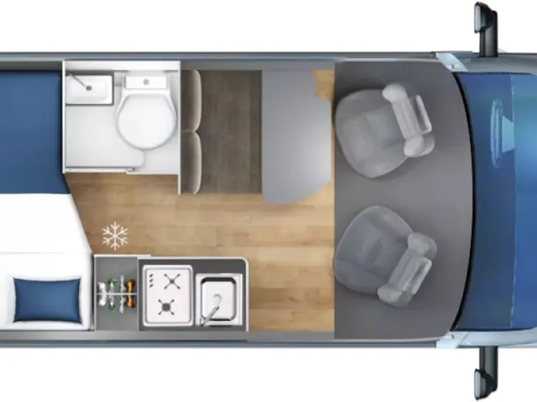 The GiottiVan 54T model is perfect for those who love freedom:2-seater rear transverse bed