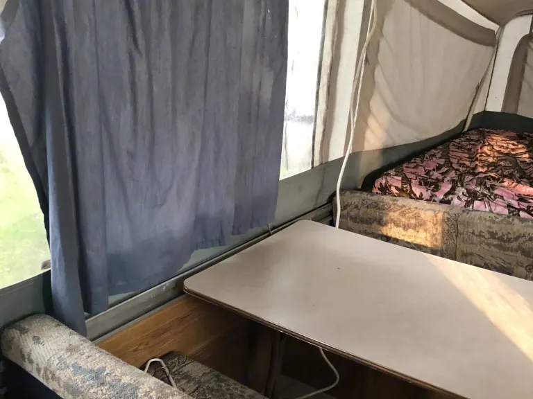 Pop-up camper with king size pull outs, table that makes into a bed, couch that makes into a bed and equipped with A/C!!! And heat!
