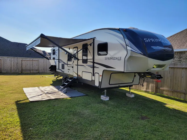 Modern, 2020 Fifth Wheel camper with 1.5 baths. It has an outdoor fridge and outdoor stove. If your truck has a gooseneck hitch and ball, then you can tow this RV! If your truck has a fifth wheel hitch, you can tow this RV! It pulls great and backs easily. Brand new rear bumper cargo rack installed!! What's includedThe RV has an outdoor fridge and outdoor stove and we include 4 camping chairs, k-cup coffee maker, roasting forks, plates, cups, flatware, towels, pots and pans, outdoor rug and more! Basically all you will need are your own sheets, pillows and food! Simple setup instructions if you choose to tow it yourself. After every use, we sanitize the entire camper with Microban AND also an ozone generator!