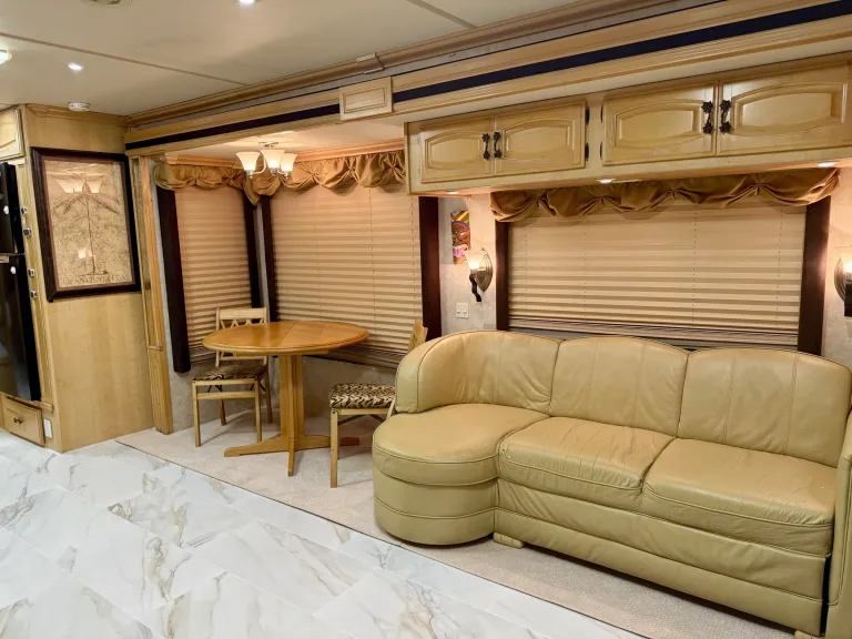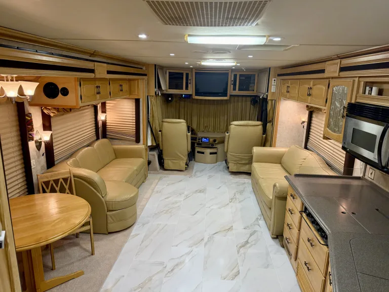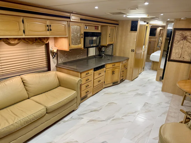 Enjoy spacious comfort, smooth air-ride driving, and a stocked kitchen.