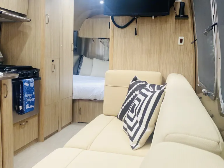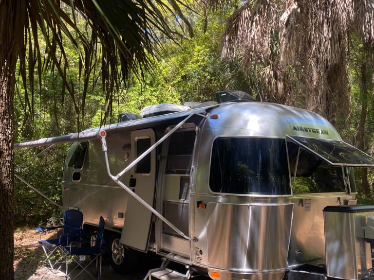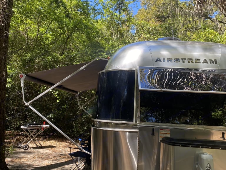 Plan your next adventure in style with our charming Airstream rental! Whether you're a seasoned traveler or just starting to explore the world, our cozy yet spacious Airstream is the perfect companion for your journey. Imagine waking up to breathtaking landscapes, cozy campfires, and the freedom to roam and explore! With its iconic design and modern amenities, our Airstream promises not just a place to stay, but a unique experience filled with memories waiting to be made. Pack your bags, hit the open road, and let the adventure begin!Our Airstream can sleep 5 people comfortably with two full beds and one slide out twin bed. With a three burner stove top, oven, microwave, and refrigerator and freezer, you will feel right at home! It has a full size corner bed, bathroom, kitchen with convection microwave, dinette, two smart tvs, web booster, bluetooth audio, propane hookup, outdoor shower, backup camera, three awnings, exterior lights, electronic breaks, 1000 watt inverter, and plenty of storage! For the best experience we also will provide two portable chairs and a travel grill. What's includedFresh linens, silverware, pots and pans, pillows, cushions, water and sewage hookups, cable hookups, power hookups with surge protector, and exterior water filtration. Delivery available for 50 mile radius for additional charge. RecommendationsHunting Island, Hilton Head, Tybee, Lake Jocassee are all some of our favorites. Other things to noteNo smoking inside, no pets, no festivals or tailgates.